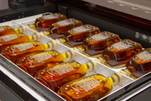 Druk UV polega na bezpośrednim nanoszeniu atramentu na powierzchnię materiału, a następnie jego utwardzaniu promieniami UV.