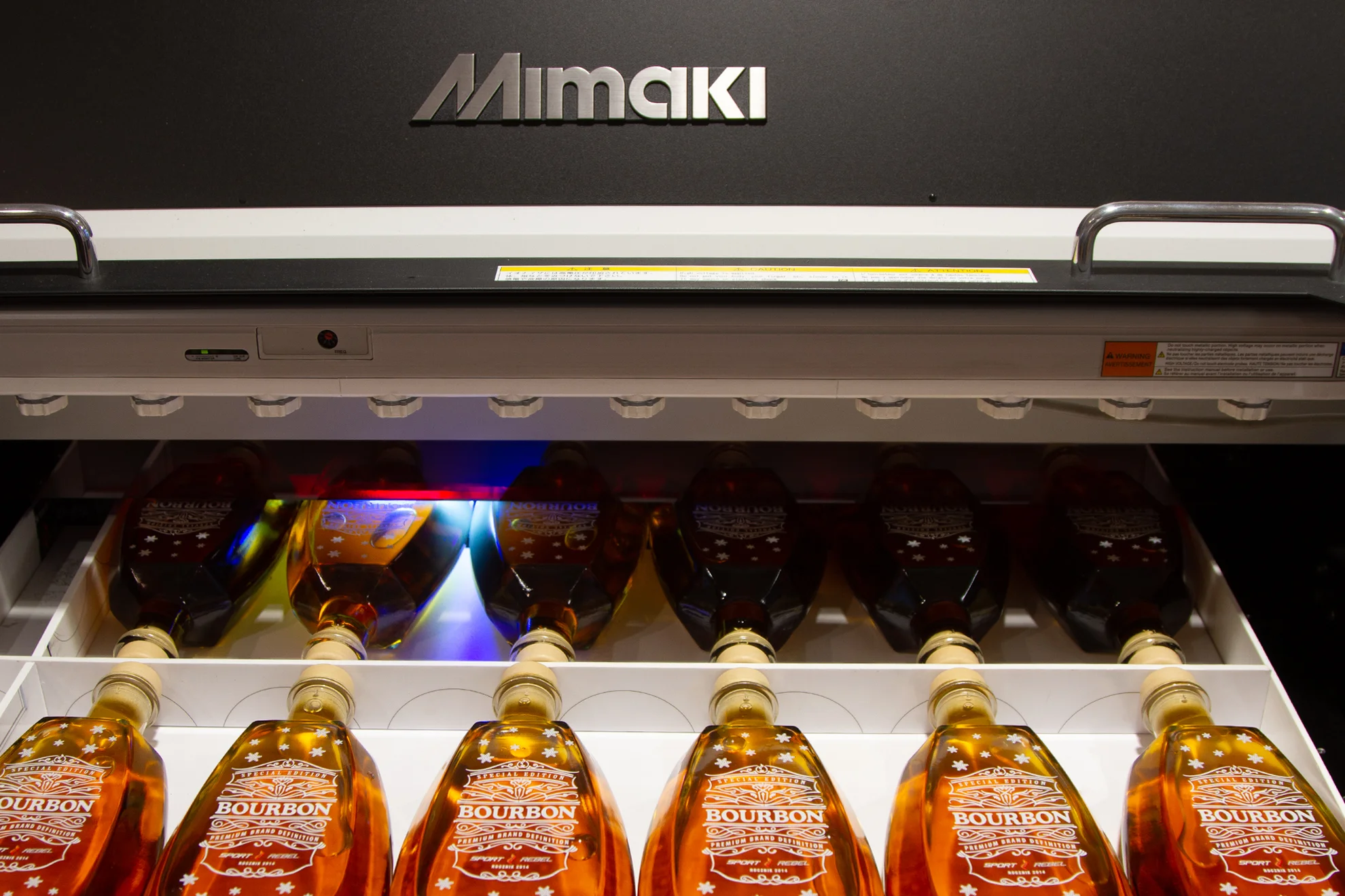 Druk UV polega na bezpośrednim nanoszeniu atramentu na powierzchnię materiału, a następnie jego utwardzaniu promieniami UV.