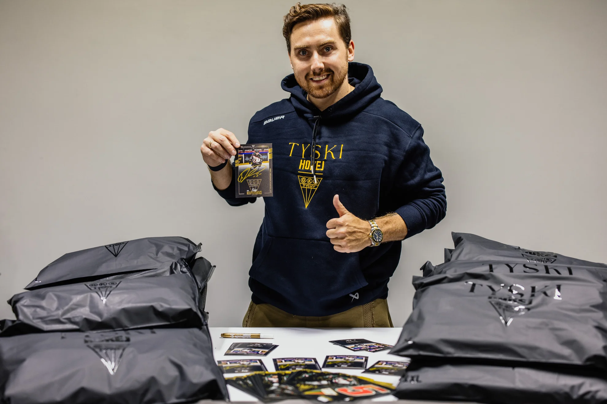 Projekt obejmował: koszulki, smyczki, bluzy, krążki hokejowe